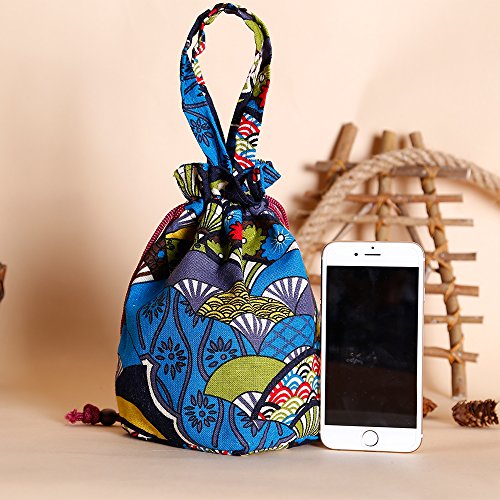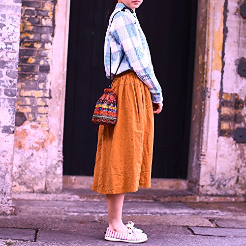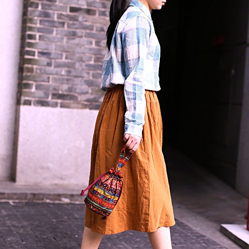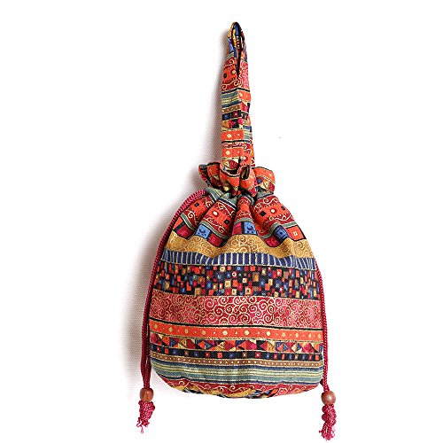 Stylish Hobo Shoulder Cotton Fabrics Bag Multicolored Travel Drawstring Women Mini Bucket Bag