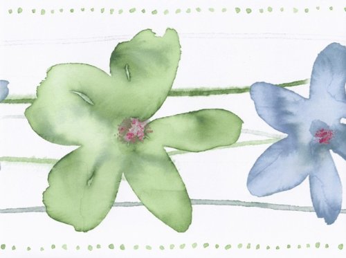 -. Title : Cream Green Blue Watercolor Floral Wallpaper Border 78167 CT