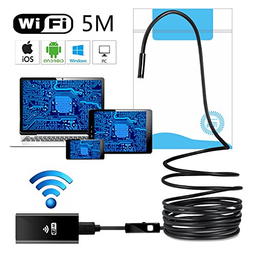 New WIFI Endoscope Inspection Camera, 5M HD 720P Waterproof Borescope Tube Camera Has Torch Light for Industry Inspection Car Testing Searching Compatible with Android, IOS, Windows System(8mm)