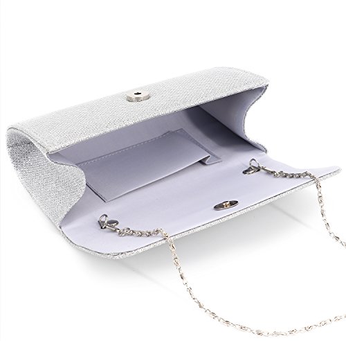 - FUCTIONALITY - Comes with a long detachable silver-tone chain which offers versatile carrying options as clutch, handbag, shoulder bag or crossbody bag. So roomy a bag that it is large enough to hold essentials like mobile phone, cards, cash, car keys, small wallet, mirror, lipstick and some makeups.