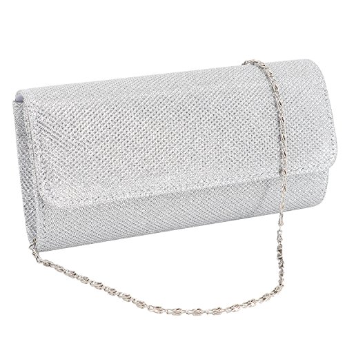 Gabrine Womens Evening Shoulder Bag Handbag Clutch Purse Shiny Mesh Fabric Material for Wedding Party