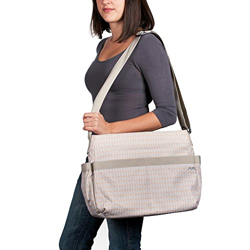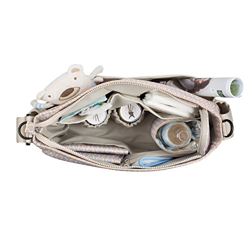 The Marv Shoulder Bag from LASSIG is a stylish diaper bag for the smaller budget. This comfortable entry model features a water-repellent changing mat and an insulated, removable bottle holder. The bag also includes a water-repellent wet pocket, a stroller attachment and an integrated cell phone compartment as well as a key finder and other accessories. The front and side exterior compartments offer extra storage space and can easily fit items such as water bottles. Available in a variety of colors and classic designs.Feature