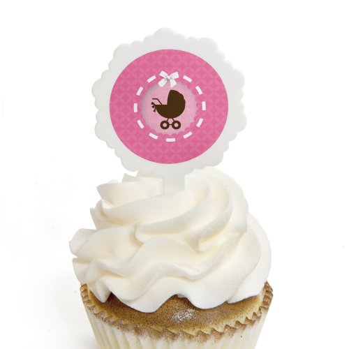 Cupcake toppers include 12 white decorative cupcake picks and 24 round sticker labels.