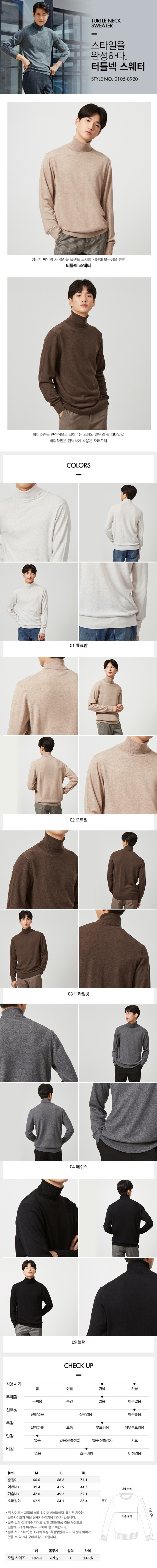 섬세한 짜임의 가벼운 울 블랜드 소재를 사용해 보온성을 높인 터틀넥 스웨터입니다.부드러운 소재로 , 바디라인을 잡아주는 디자인 입니다.