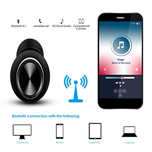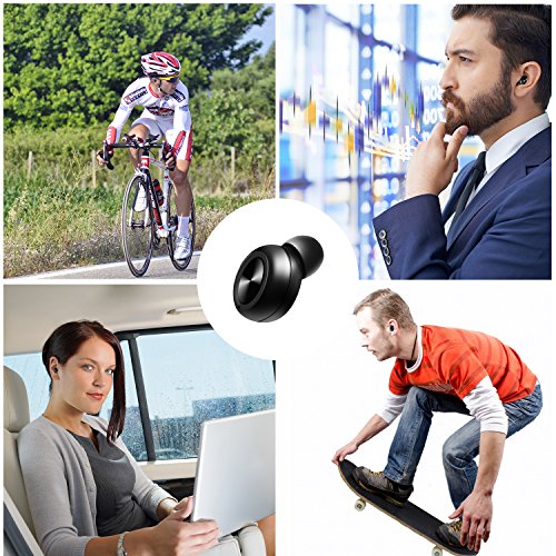 -. Feature : Super lightweight wireless Bluetooth Earbud :The tiny mini volume, hidden and invisible, it fits natural there, and makes others hard to notice.Feels good and nice on your ear, the Ergonomic designed to conform with the shapes of your ear and low weight there, comfortable sensation no matter you're indoor or outdoor jogging / HD QUALITY SOUND Wireless Invisible Headphone: HD microphone built in to offer you access to handsfree call which is ideal for chatting, or phone talking even when you're in car, owning better echo cancellation, noise suppression and stable signal brings you smooth communication each time without interference / HIGH-TECH BLUETOOTH 4.1 Car Headset : Advanced Bluetooth V4.1: support easy and fast pairing with Apple iPhone 7/7 Plus 6s/6s Plus, Google Pixel, Samsung, tablets, Samsung, LG V20,and other bluetooth-enabled devices. Connect the mini earbud with TWO smartphones at the same time, and the wireless range up to 33ft (10 meters) / ULTRA LIGHTWEIGHT Bluetooth Headphones: Ultra lightweight wireless headset: 3g, mini invisible design with one-button control, smaller than Q26 bluetooth earpiece, the bluetooth car headphone fits in ear perfectly until it goes off and leaves one ear free to the environment, providing safety / SUPER LONG ENDURANCE Earphone : The built in rechargeable 50mah polymer battery, embedded with optimal circuit to effectively lower down power consumption and save power to last longer, 4-6 hous music time, long standby up to 80hours