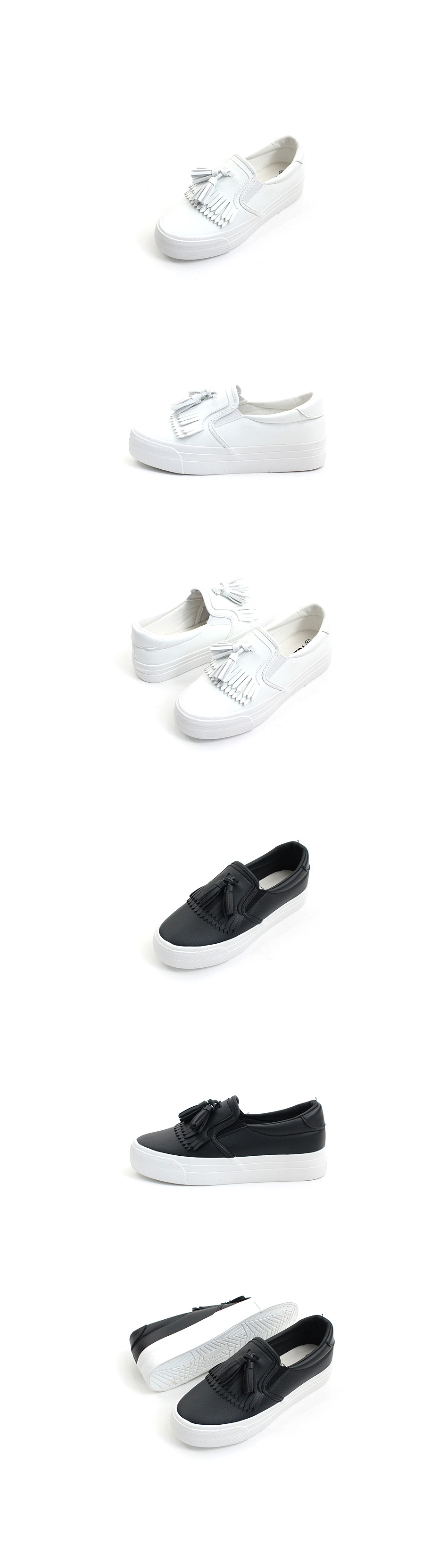 Shin Fringe Tassle Tongue slip-on 3.5cm platform foot comfortable leather Natural leather