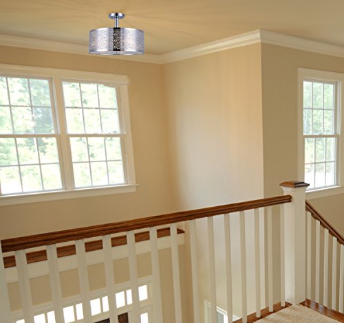 CANARM Style Piera ISF543A03CH 4-Light Semi-Flush Mount. The Piera collection features a sleek chrome finish. The unique patterns on the shade is both contemporary and decorative. The frosted glass panel diffuses light evenly throughout your room. Perfect for bedrooms and hallways. Canarm has a long and successful history of supplying lighting and ceiling fans. They work diligently to create a comprehensive selection of styles and designs as well as maintaining high standards of product quality and value.Feature