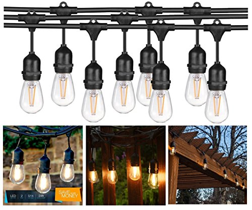 49 FT LED Outdoor String Lights by Bright Path LED - UL Listed - 15 Hanging Sockets - Perfect Patio Lights - 2 Watt Dimmable LED Bulbs