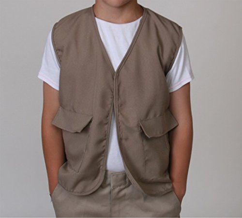 Includes one twill khaki safari explorer vest (Vest length from shoulder to hem is approx. 18" long. Chest circumference is approx. 32")