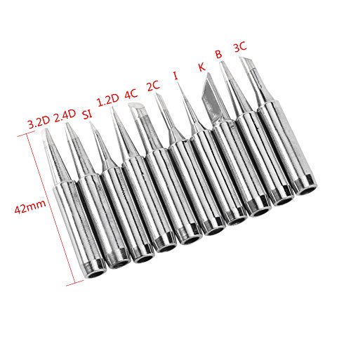 10pcs 900M-T Series Copper Base Lead-free Electroplating Iron and Nickel Replaceable Solder Iron Tips Set Low Temperature Soldering Station Tool Shape I, SI, B, K, 1.2D, 2.4D, 3.2D, 2C, 3C and 4C