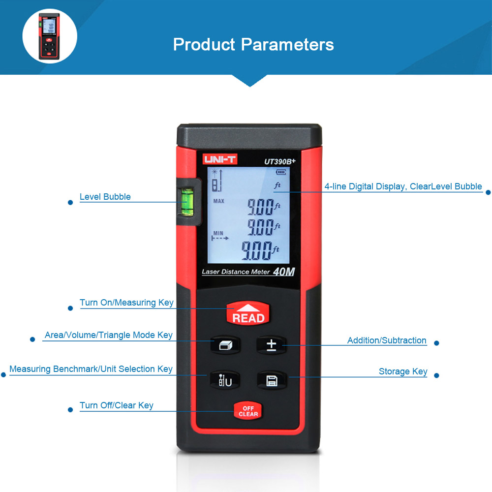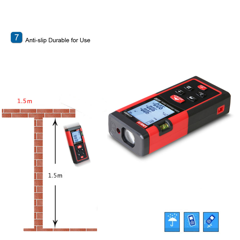 This item belongs to high precision and multi-functional laser measuring instrument, which can be used to measure the distance, area and volume, and can also utilize the indirect measurement of Pythagorean theorem. The product is portable and reliable in measuring, making your measurement more accurate, simple and faster, and getting twice the result with half the effort.