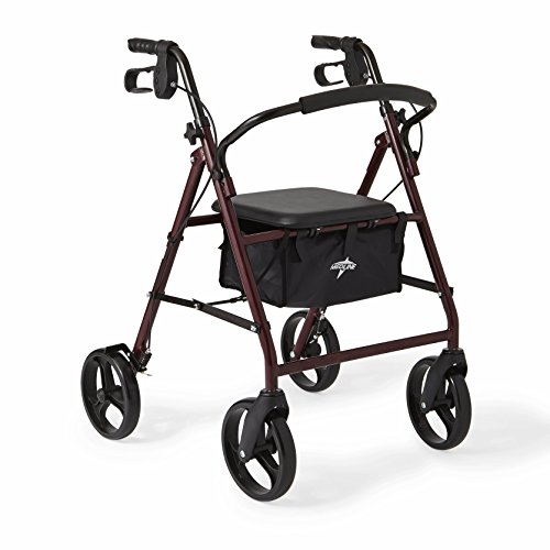 Medline Standard Steel Folding Rollator Walker with 8" Wheels, Burgundy