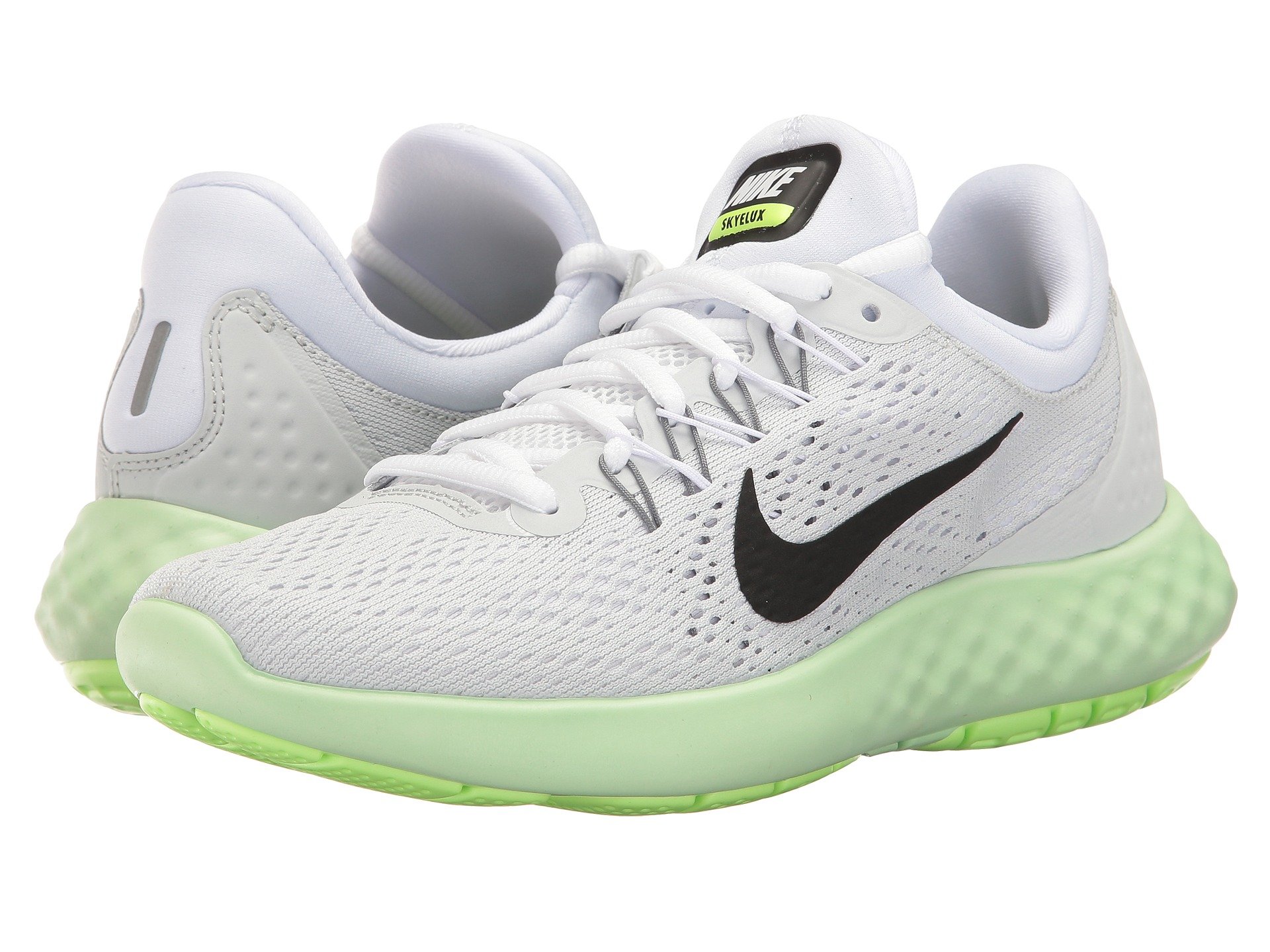 | Product Information SKU: #8753749Stride light in the sock-like fit and optimal comfort of the Nike? Lunar Skyelux running shoe.Predecessor: None. Support Type: Neutral to underpronation (supination).Cushioning: Lightweight, flexible response. Surface: Road. Differential: 12 mm.Breathable engineered mesh, textile, and synthetic upper materials. Flywire technology built into the laces wraps the foot to provide lateral support and a locked-in fit. Lace-up closure. Bootie construction. Plush tongue and collar. Smooth fabric lining offers a great in-shoe feel. Molded foam footbed. Dual-density Cushlon foam midsole cushions every stride. Engineered pods on the outsole absorb impacting shock.Imported. Product measurements were taken using size 7.5, width B - Medium. Please note that measurements may vary by size.Weight of footwear is based on a single item, not a pair.Measurements: Weight: 8 oz |
