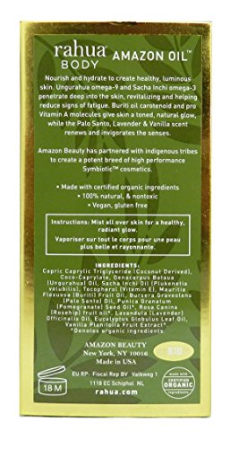 Crafted with potent oils meticulously cultivated in the Amazon rainforest, this delicate mist is surprisingly powerful. Fast-absorbing, lightweight and deeply hydrating, this restorative oil is filled with omega-3 and omega-9 fatty acids, antioxidants, carotenoids, and vitamins C and E, which work to repair, heal, and moisturize dry skin. Highly effective and lightly scented with rainforest botanicals, it delivers luminous, healthy skin.Feature