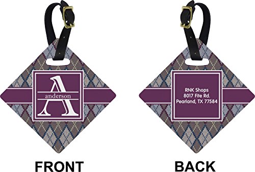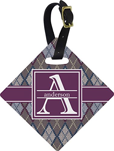 Make traveling stylish when you add one of these diamond shaped luggage tags to your baggage. You can choose from colorful designs that stand out against your luggage and we also have cute youthful designs for children. The luggage tags are diamond shaped and durable with the design printed on both sides. They also include a leather strap with buckle to secure onto luggage handles. About the Design Add a cozy touch of a knit sweater to anything with our Knit Argyle design. The primary color of the design is gray with stitches of dark violet, dark blue, and cream. The design also includes a ribbon and label shown in dark violet. You can customize this design by putting your name and initial on the label. You can keep the font shown or pick another from our selection. You can also change the label and ribbon design and color. 1 |