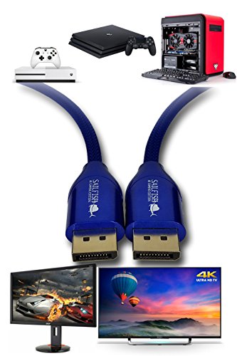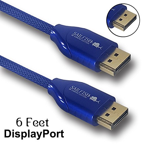 Sailfish DisplayPort to DisplayPort Cable 4K Resolution Gaming Edition, HDR & FreeSync, Cable Wrap Included (6 Feet, Blue)