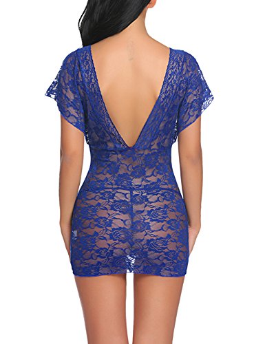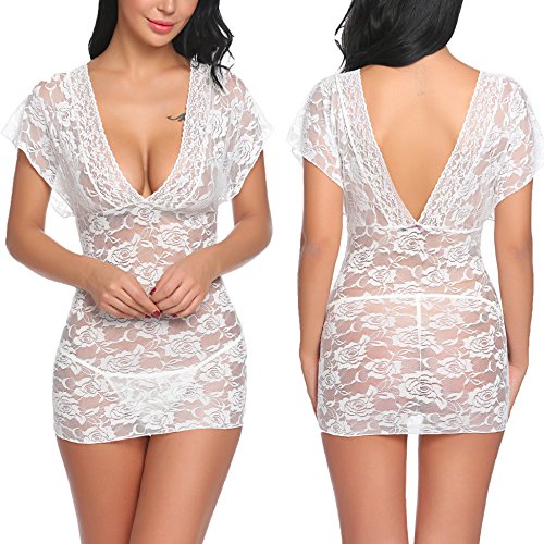-. Feature : Material: 50% Polyester, 50% Acrylic / Women lingerie babydoll set featuring scalloped plunging v-neckline and v-back design. The lingerie nightwear is very charming / Raglan short sleeve , floral lace fabric; The lace is soft and comfortable / Our Model Information: Height 68.90inch, Bust 36.22inch, Waist 23.63inch, Hip 35.43inch (Fits size S) / Package Content: 1 x Women Lingerie Babydoll with G-String