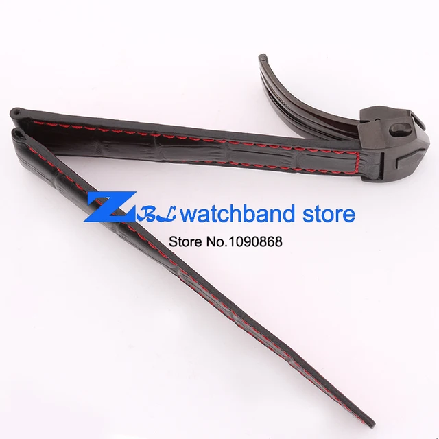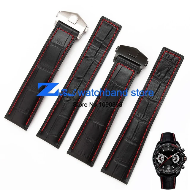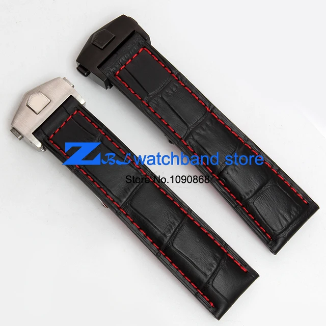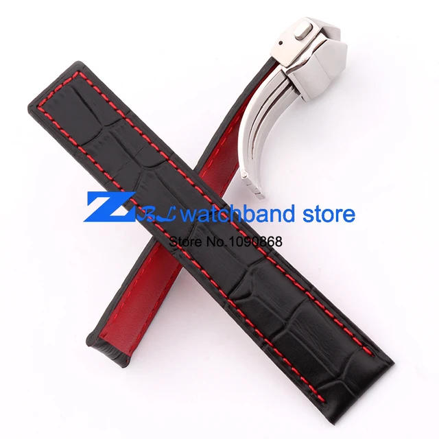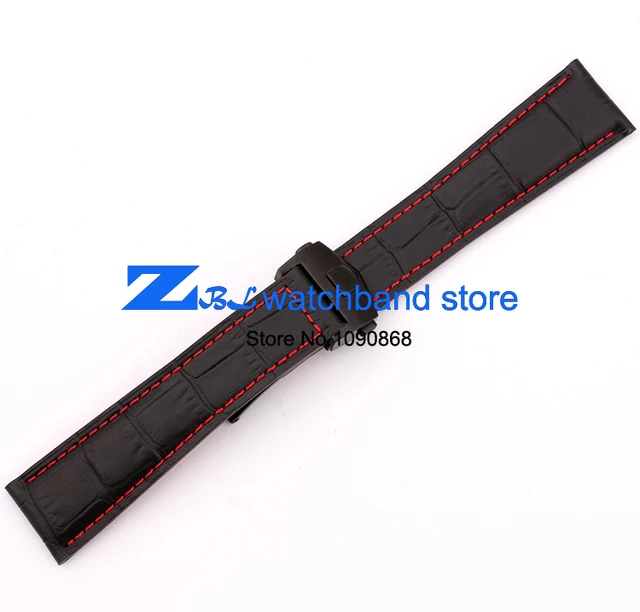 [해외]높은 품질의 정품 가죽 시계 스트랩 블랙 손목 시계 레드 스티치 스트랩 20 미리메터 22 미리메터 남성 시계 시계 액세서리