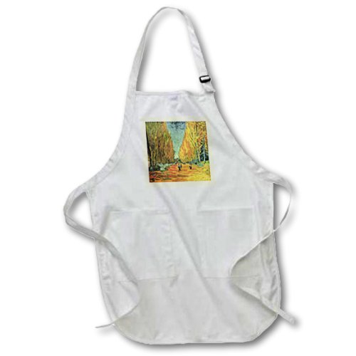 3dRose apr_48247_4 Aqua N Yellow Framed Van Gogh Landscape-Full Length Black Apron with Pockets, 22 by 30-Inch