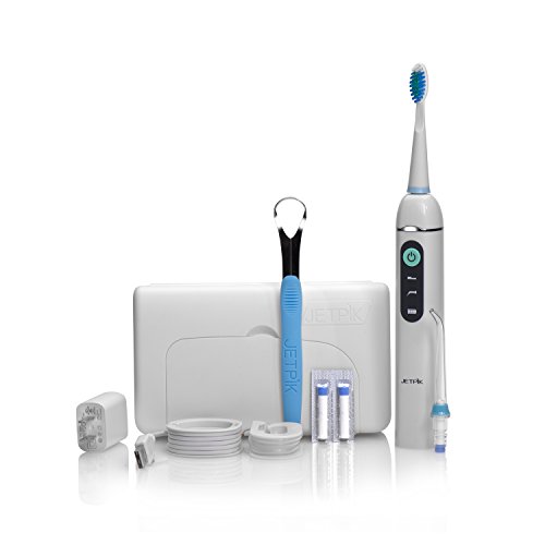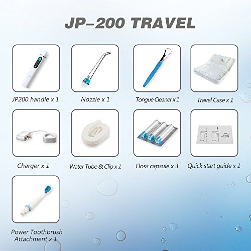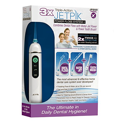 JETPIK JP200 TRAVEL RECHARGEABLE ELECTRIC DENTAL FLOSSER ORAL IRRIGATOR WITH PULSATING FLOSS PLUS WATER POWER & SONIC TOOTHBRUSH, COMPACT DESIGN FOR TRAVELERS