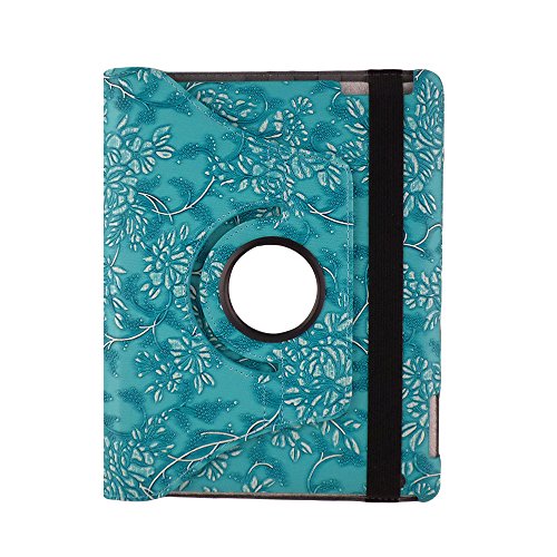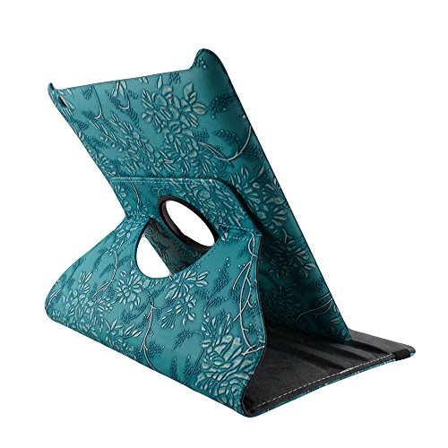 TCD for Apple iPad 2nd 3rd 4th Generation [iPad 2 3 4] Fancy PU Leather [BLUE] Embossed Flower Design [360 Rotation] Case Cover