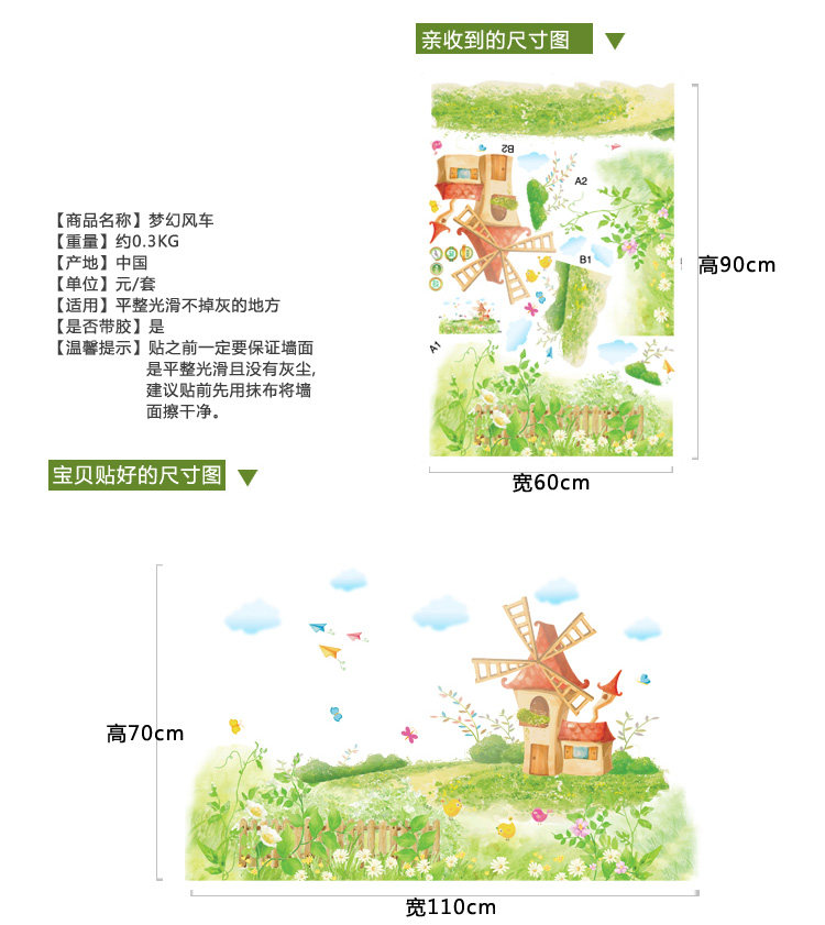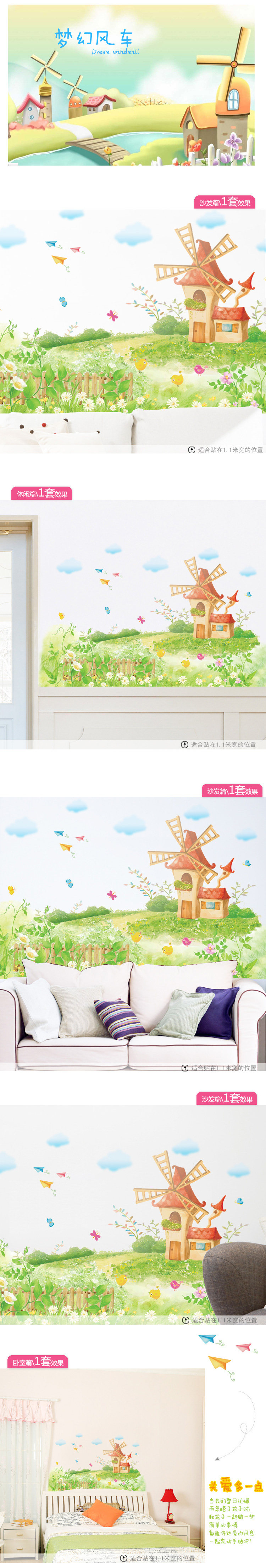 可移除墙贴纸/梦幻风车/墙纸贴墙贴画客厅贴花 田园风格