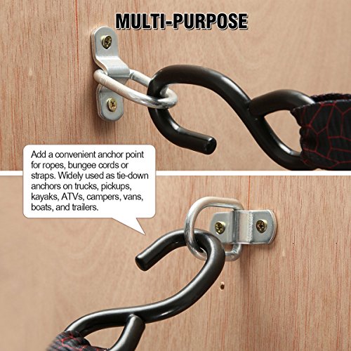 ✔ MULTIPURPOSE : AUDEW D ring anchors add a convenient anchor point for ropes, bungee cords or straps. Widely used as tie-down anchors on trucks, pickups, kayaks, ATVs, campers, vans, boats, and trailers, they are handy as wall hooks in organized garages, warehouses, and workshops as well.