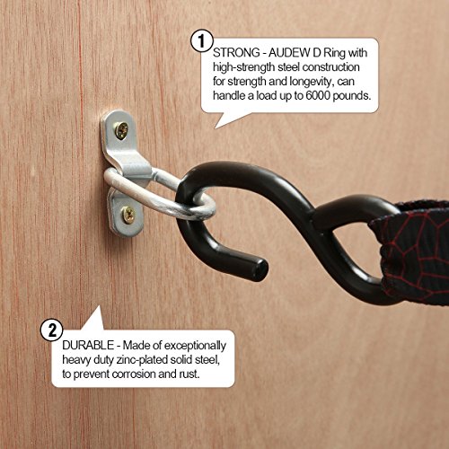 ✔ STRONG & DURABLE : AUDEW D Ring tie downs with high-strength steel construction for strength and longevity, can handle a load up to 1200 pounds per ring. That means that this pack of 8 rings can bear up to 9600 pounds.