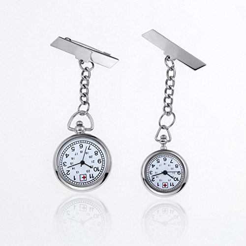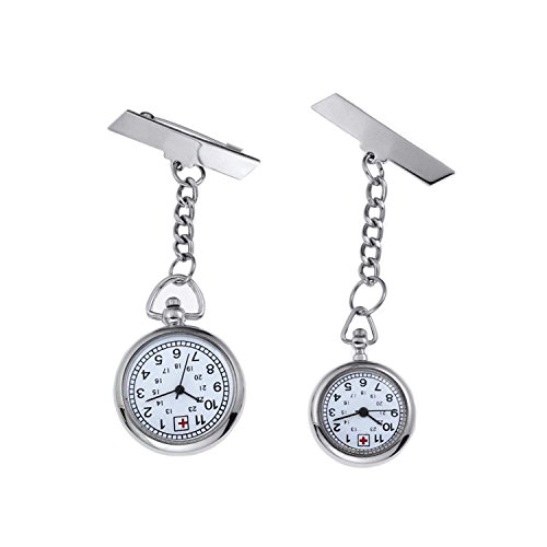 -. Title : Silver Women's Fashion Nurse Clip-on Fob Brooch Hanging Pocket Watch, Pack of 2