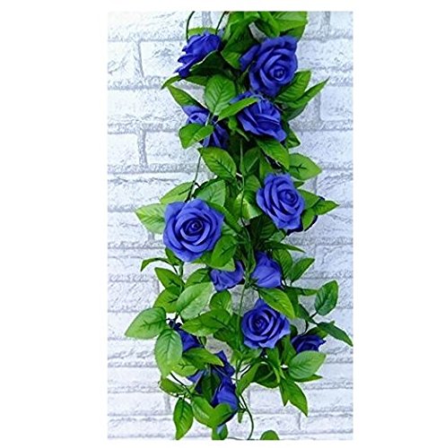 Ebuyingcity 8 Feet Artificial Big Diamond Blue Rose Flower Green Leaf Vine Garland for Home Wall Party Wedding Decor