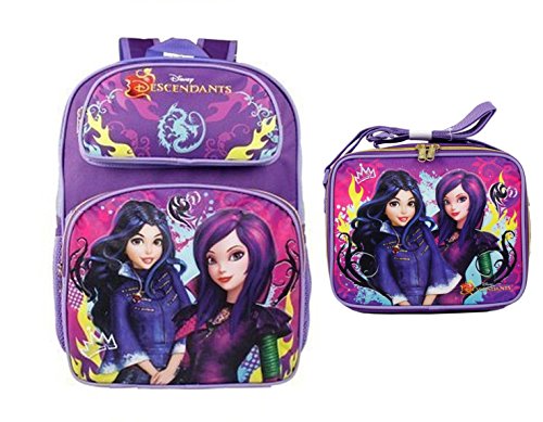 -. Brand : Descendants -. Color : Multi-color -. Feature : Made of an easy to clean and very durable polyester cordura fabric with embossed 3D graphics / Backpack features roomy main zippered compartment for binder, books and folders. Feautres two cargo zippered front pockets and two mesh side pockets for bottles or other essentials / Padded back and adjustable padded straps for comfort; convenient top carry loop / Insulated lunch box is fully lined with easy care wipe clean material. It has a top handle and an adjustable shoulder strap for multiple carrying options / Backpack dimensions: 16"H x 12.25"W x 6"D. Lunch box dimensions: 7.5"H x 9.5"W x 3.5"D -. NumberOfItems : 1 -. ProductGroup : Apparel -. ProductTypeName : LAGE -. Size : Large -. Title : Disney Descendants 16" Backpack & Insulated Lunch Tote Set