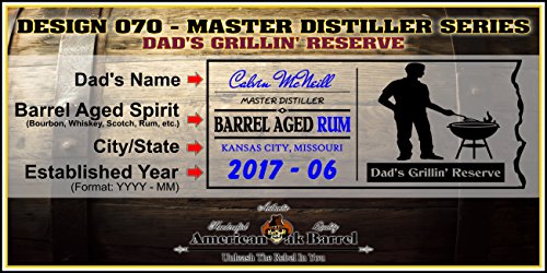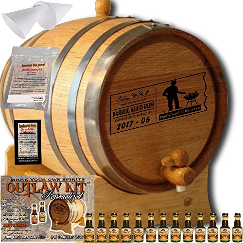 Studio : American Oak Barrel Publisher : American Oak Barrel Product Description Branded backside with Skeeter's face, insures this is a Certified, Authentic American Oak Barrel Product! Personalized Outlaw Kit "MADE BY" American Oak Aging Barrel - Design 070: Dad's Grillin' Reserve - Master Distiller Series............This vessel is handcrafted from American white oak, bound by 6 hoops of steel and features a stunning laser engraved design celebrating Dad's endeavors! Outlaw Kit includes Skeeter's Reserve Premium Essence necessary to create your own Spirit Masterpiece! The barrel is perfectly charred to release the sugar from the oak. After the firing process, the sugar caramelizes on the inner wall and is critical to mellowing the decanted spirit. The longer your spirits age in this barrel the smoother, refined or mature it becomes. Accommodates approx. 2.5 gallons of spirit. Please enjoy responibly! 0