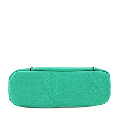 -. Feature : 11" (W) x 9" (H) x 3.5" (D) / Zipper closure / Adjustable shoulder strap with 26.5" drop / Faux leather & gold tone hardware / 1 zipper pocket & 2 open pockets inside