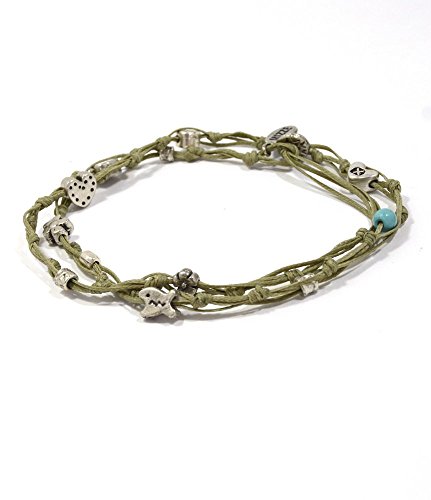 -. Binding : Jewelry -. Brand : MIZZE Made for Luck Jewelry -. Department : womens -. Feature : KHAKI HANDMADE WAX WIRE TIES ANKLET - The ties anklet is made with Khaki wax cotton (durable) and various charms. / 10.5" DOUBLE WRAP ANKLET for COMFORTABLE FIT - The double wrapped anklet is 21" in total length - so size 10.5" and wraps twice around the ankle. / GOOD LUCK & LOVE CHARMS ANKLET - The charms include the Hamsa Hand, Bird of Song, Heart and Star charms. / QUALITY MATTE SILVER PLATED CHARMS - The charms have a quality matte dark silver finish plating. / **100% FULL MONEY BACK GUARANTEE - We stand behind our brand and provide a 100% full Money Back Guarantee. If you are unhappy with your Charms Anklet, for any reason please contact us! -. Label : MIZZE Made for Luck Jewelry -. Manufacturer : MIZZE Made for Luck Jewelry -. Model : MZ6009KHS -. MPN : MZ6009KHS -. PartNumber : MZ6009KHS -. ProductGroup : Jewelry -. ProductTypeName : FASHIONNECKLACEBRACELETANKLET -. Publisher : MIZZE Made for Luck Jewelry -. Studio : MIZZE Made for Luck Jewelry -. Title : Khaki & Silver Double Wrap Charm Anklet for Love & Good Luck - 10.5"