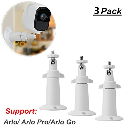 -. Feature : All-metal, ensure stability. Using space shuttle aluminum alloy, never rust,Not afraid of rain or sun. / Design for Arlo, Arlo Go, Arlo Baby and Arlo Pro Wire-Free Cameras.Extends 5 in. from the mounting surface / Indoor/Outdoor Wall or Ceiling Mount For Netgear Arlo Smart Home Security Camera System & Other Camera Systems CCTV DVR cameras installation, and so on.(NOTE: Security Camera NOT INCLUDE) / 360 degree adjustable: with 360 degree swivel and 90 degree tilt, the camera mount can be installed on the wall and ceiling with the appropriate angle. / Package:3 x Camera Wall Mount + fixed screws and wall plugs.