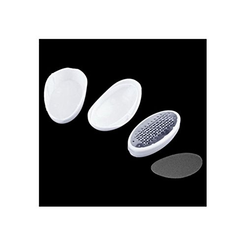 Ergonomic design and safe to touch Colours Available: White Size: 10*5.5cm Material: Plastic Safe to touch Includes 2 emery finishing pods The ultimate foot file great for removing all dry and callous skin on your feet. The stainless steel micro files are gentle and extremely safe, giving your feet a smooth and soft feel. The teardrop shape has been ergonomically designed for comfort and ease of use, and to collect all residue and shavings in the container leaving no mess. Catches and contains removed skin leaving no mess