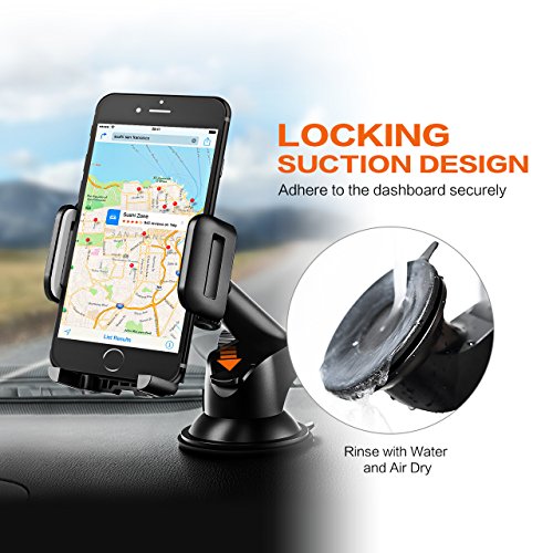 Flexible Arm Lock: Simply press the button to adjust arm width that ranges from 1.6-3.5in (4-8.8cm). Our car mount holder is compatible with most smart phones up to 6 inches.