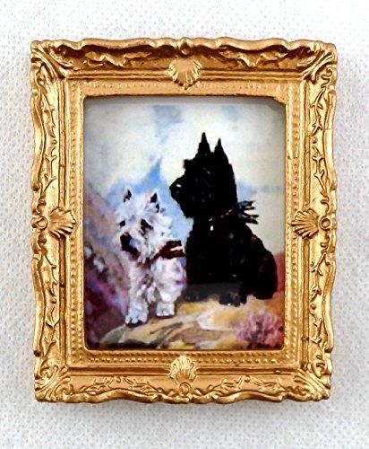-. Title : Melody Jane Dolls Houses House Miniature West Highland Terriors Picture Painting Dogs In Gold Frame