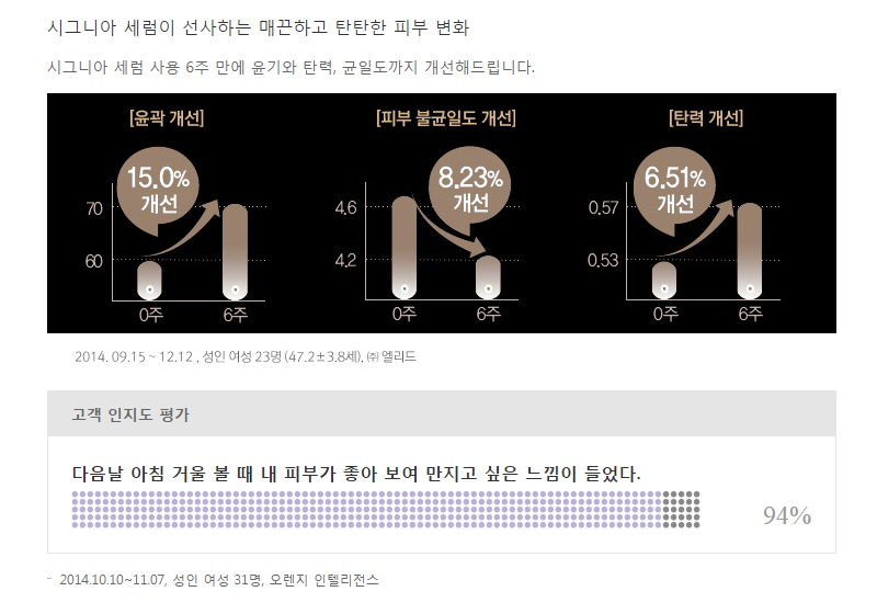 | A total anti-aging care serum that makes the skin firm and glow with the powerful vitality of 3 million narcissus stem cells Breathes strong vitality into the skin for beautiful, glowing skin 3 million narcissus stem cells developed exclusively for HERA are put into each and every bottle of SIGNIA SERUM to give skin that glows with health and strong vitality. Enchantingly beautiful, firm and smooth skin Enriched serum coats the skin in a soft veil to instantly make the skin firm, smooth and glowing for skin that is so beautiful that you would fall in love with. SIGNIA SERUM for smooth, firm skin SIGNIA SERUM improves skin firmness, tone (evenness) and glow in just 6 weeks. |