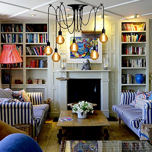 Light Source: 6* E26 base Edison bulbs (bulbs not included), Voltage: AC110V-240V.