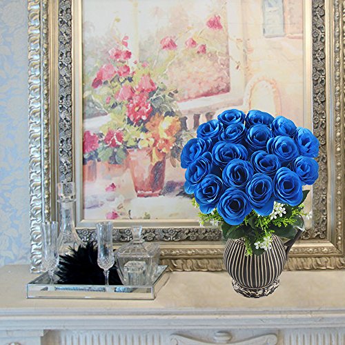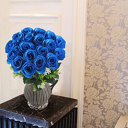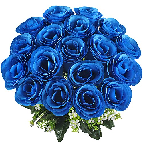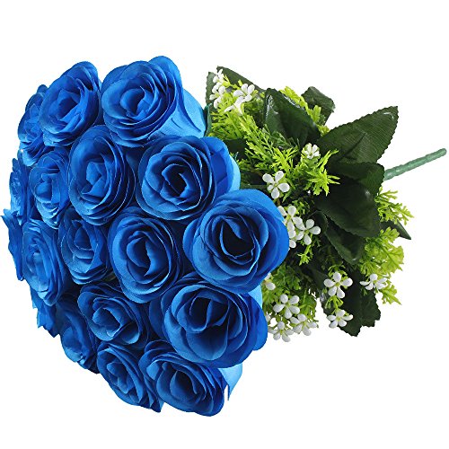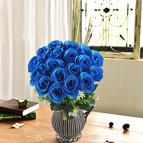1 X 18 Heads Blue Silk Roses Artificial Flowers Bouquet as picture show ?Vase NOT included?