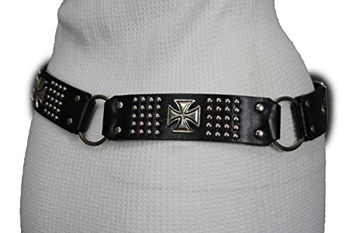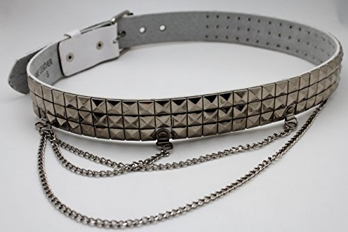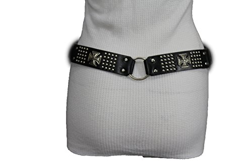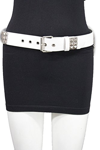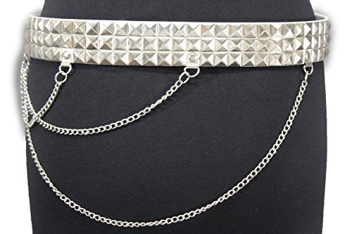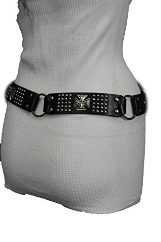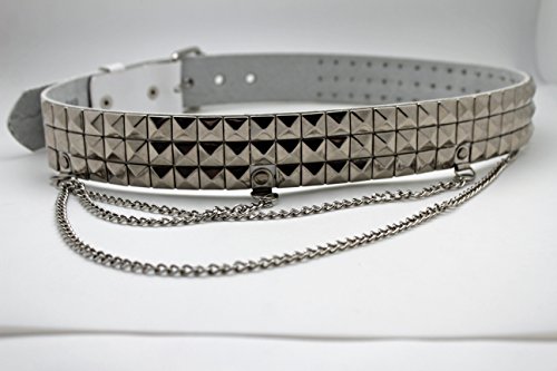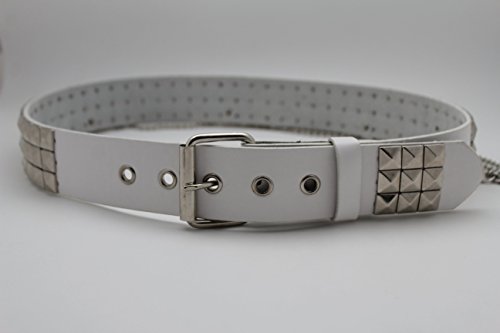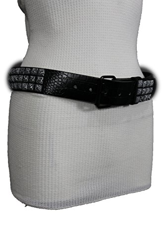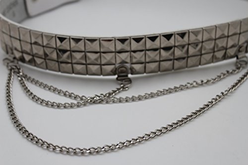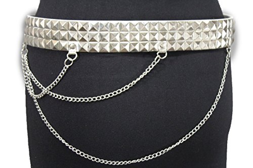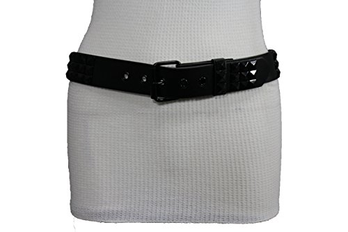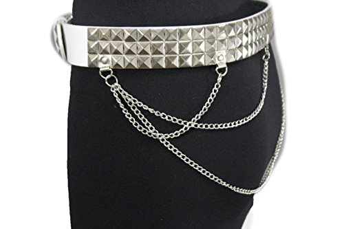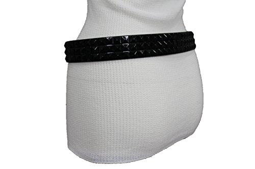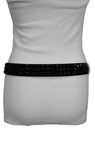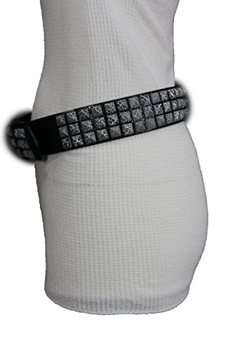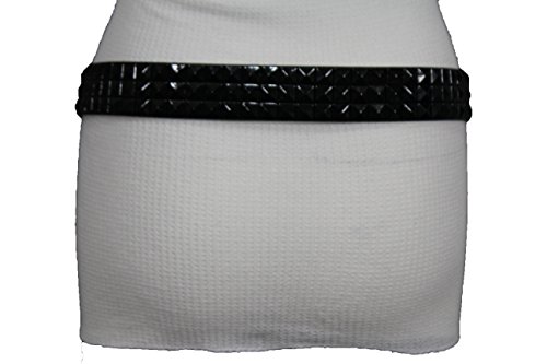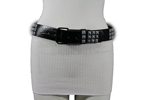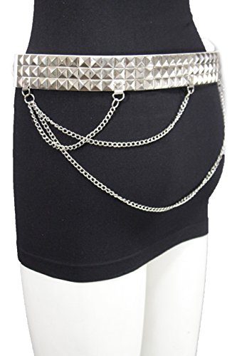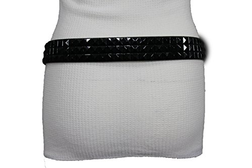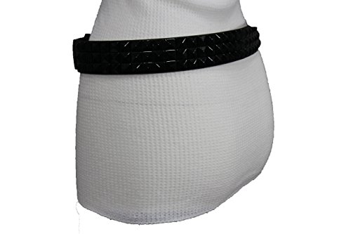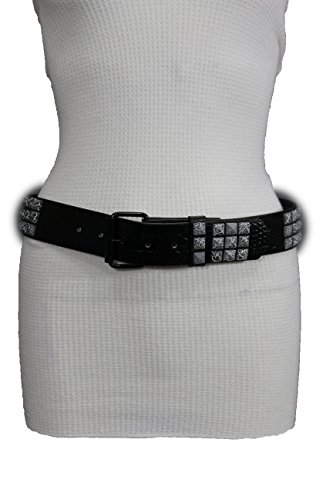| (Trendy Fashion Jewelry)/Accessories/Belts Buckles/DIRECT FROM USA/TFJ Women's Rocker Fashion Belt Silver Metal Chain Pyramid Stud Buckle S M L XL Black |