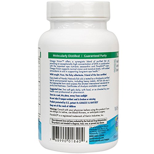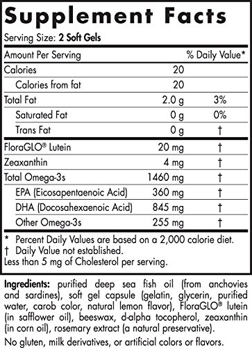 Omega Vision offers a synergistic blend of high-intensity omega-3 DHA with key nutrients that have been shown to protect the eyes and support healthy vision. The omega-3 DHA (docosahexaenoic acid) is more concentrated in eye tissue than in any other part of the body, and is vital to the structure and function of healthy eyes. FloraGLO Lutein with zeaxanthin has been added to further support the structures of the eye and provide protection against harmful ultraviolet blue light.