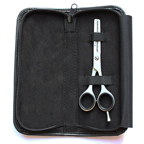 Your stylish and sleek looking Thinning Scissors comes in a free zippered cushioned black leather case with elastic bands to keep the scissors in place and prevent accidents.