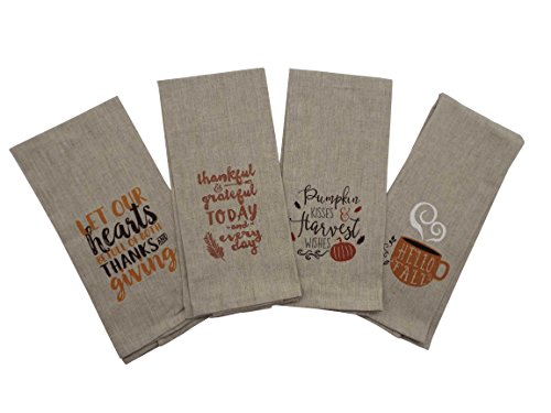 Beige Fall Kitchen Towels - Set of 4 Assorted Designs - 15 x 25 Inches