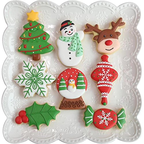CHRISTMAS COOKIE CUTTER SET - This set includes Christmas themed shapes. Santa, Rudolph, Snow Globe, Snowflake, Stocking, Ornament, and Santa's Sleigh. Perfect for family baking nights and your Holiday cookie swap.