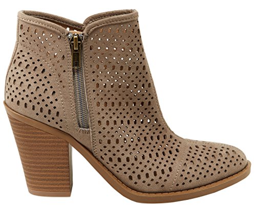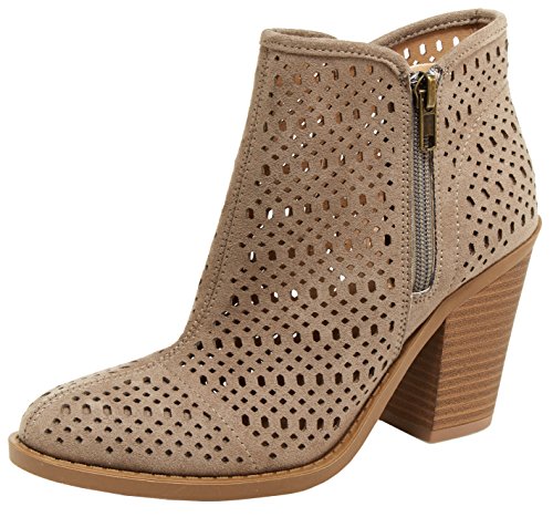 Esprit Women's Kay Laser Cutout Almond Toe Stacked Chunky Heel Ankle Bootie