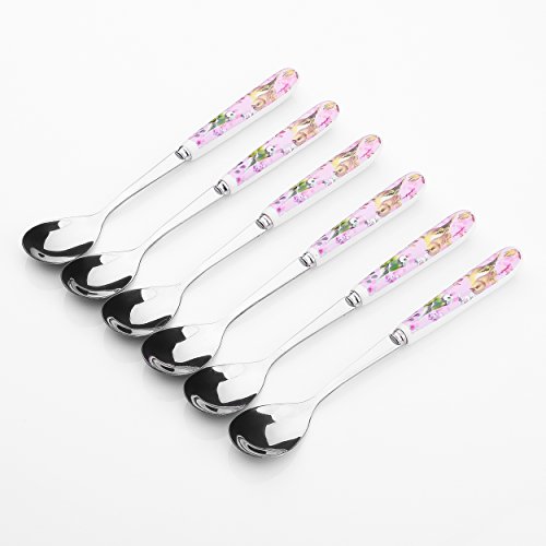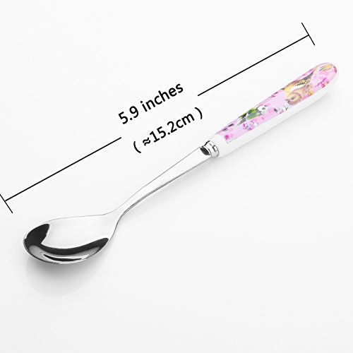 VEWEET 6 Pieces White Porce VEWEET 6" Stainless Steel Coffee Spoons with Bone China Handle, Set of 6 6" Spoon L*W*H 15.24*1.6cm Weight 23g Package Content 6 * 6" Spoon Crafted from High-Grade Stainless Steel with a Mirrored Finish. Durable Strong Construction that Will Last for Years to Come. Perfect Size for Children and Older, Regardless of Women or Men. Great for Home, Offices, Staffroom, Restaurants and Cafes Use. Simple Style Design Easily Matches Existing Flatware in Your Kitchen. lain Handle Floral Staninless Steel Tea Coffee Spoons,6"/15cm Ice Cream Spoon Chinese Spoons for Home Restaurants spoon size: 15.24*1.6cm spoon weight: 23g package size:18*18*1.8cm package weight: 145g Package includes: 6*6" coffee tea spoon