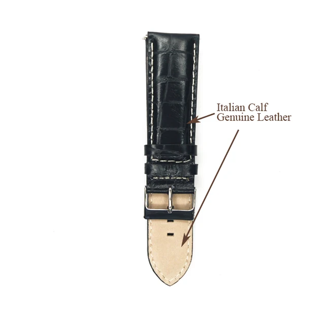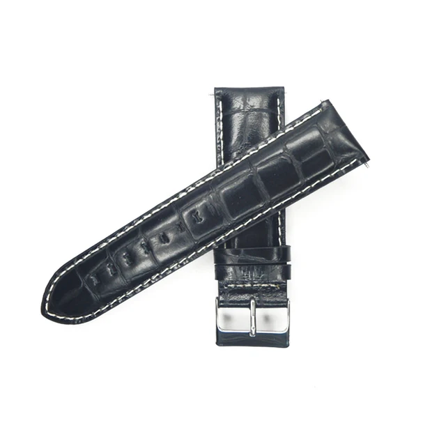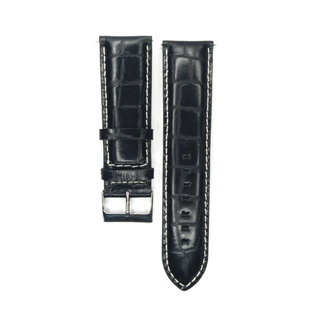| [해외]시계 스트랩 악어 광장 송아지 가죽 정품 가죽 시계 밴드 악어 손목 24 미리메터 블랙 버클 벨트 시간 |