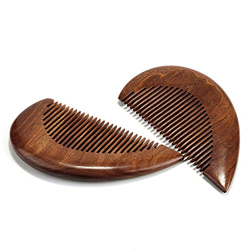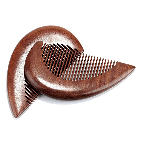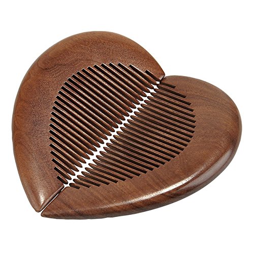 CCbeauty 2Pcs Wood Comb Heart-shaped Anti Static Natural Red Sandalwood Comb Handmade Comb Massage Wooden Combs Set